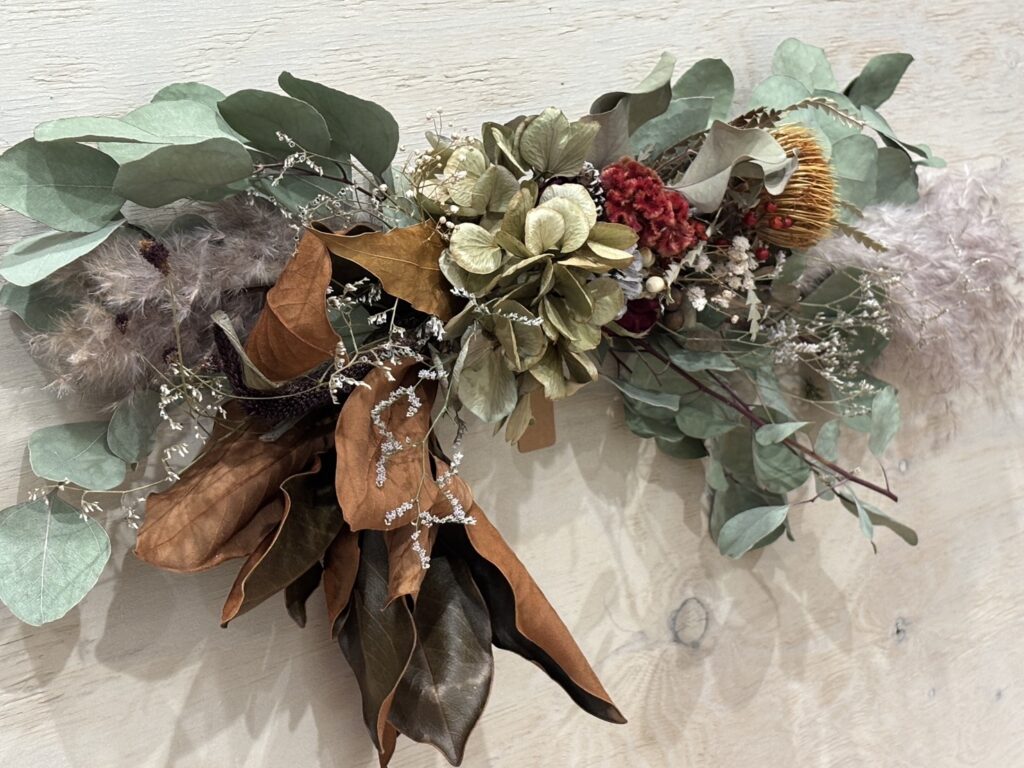 ドライフラワーやプリザーブドフラワーを使ったリースやアレンジメントのオーダー制作も行っています。
