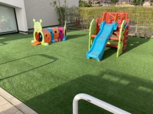 「人工芝は冬に施工しておくと、春から使いやすい!」