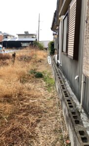 お隣さんも近く、雑草が伸びるとお隣の敷地に入りそうなのが気になります。